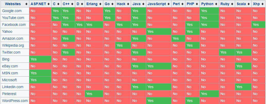 در جدول زیر لیستی از شرکت های معروف آماده کرده ایم و زبا نهای مورد استفاده در Backend آنها هم مشخص شده است.